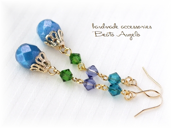 > ◆◆チェコビーズとスワロフスキーのピアス(p-437)オペークブルー G FP001 シンプル チタン 樹脂 イヤリング