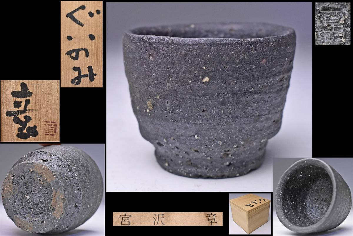 > 宮澤章 ★ 黒釉ぐい呑 ★ 共箱栞 ★ 高台の無骨な作り見事 ★ マットな黒 の 質感良好 ★ 益子焼 の 薄田浩司 師事 ★