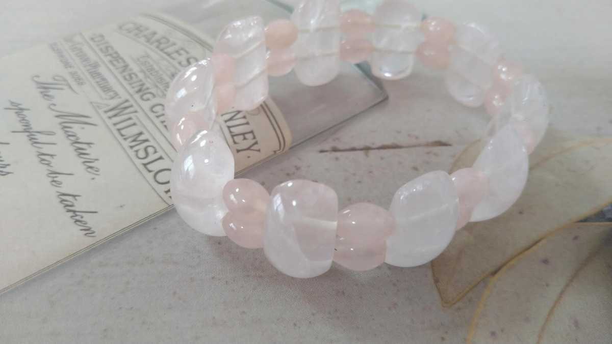 - □訳あり□ローズクウォーツ風ストーン・ブレスレット□
