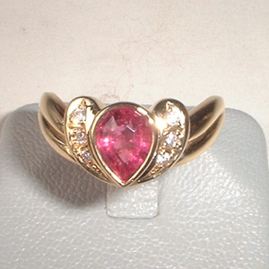 - 送料無料 k18しずく型ルビー両端にダイヤリングused質屋出品
