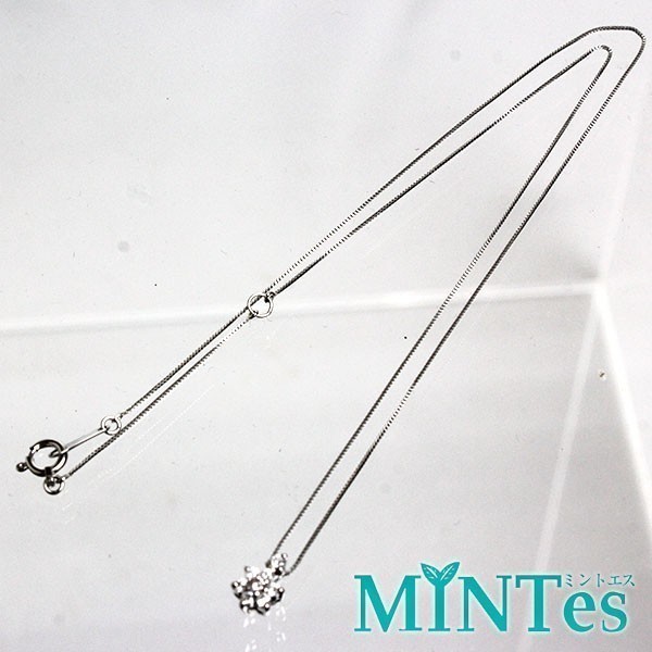 - Pt900/850 フラワーモチーフ ダイア ネックレス D0.11ct 総1.6g プラチナ