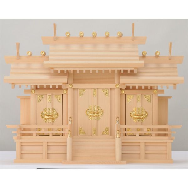 - 国産木曽檜製神棚 屋根違い三社神棚 サイズ:中 日本製神棚 白木 無塗装 桧 ひのき