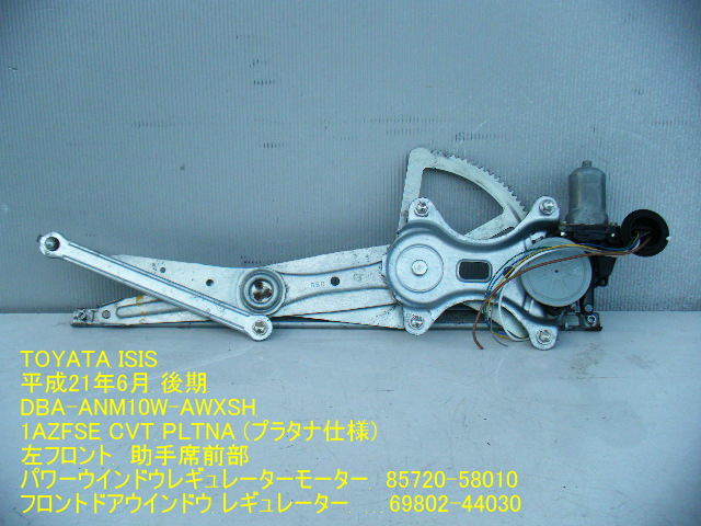 - ◆ANM10W ZNM10W アイシス プラタナ PLTNA 左フロント レギュレーターモーター パワーウインドウ 助手席前 85720-58010 中古 即決 [10538]