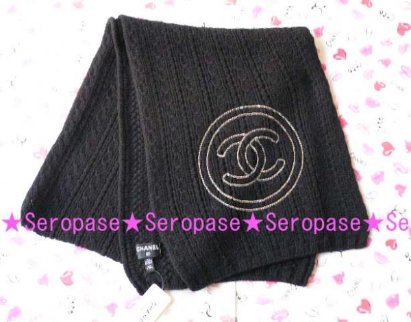 - ★07Aシャネル CHANEL CCマーク黒 カシミヤ マフラー