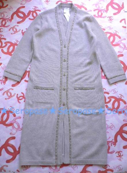 - ★08CシャネルCHANELビーズトリム カシミヤ ロング カーディガン44