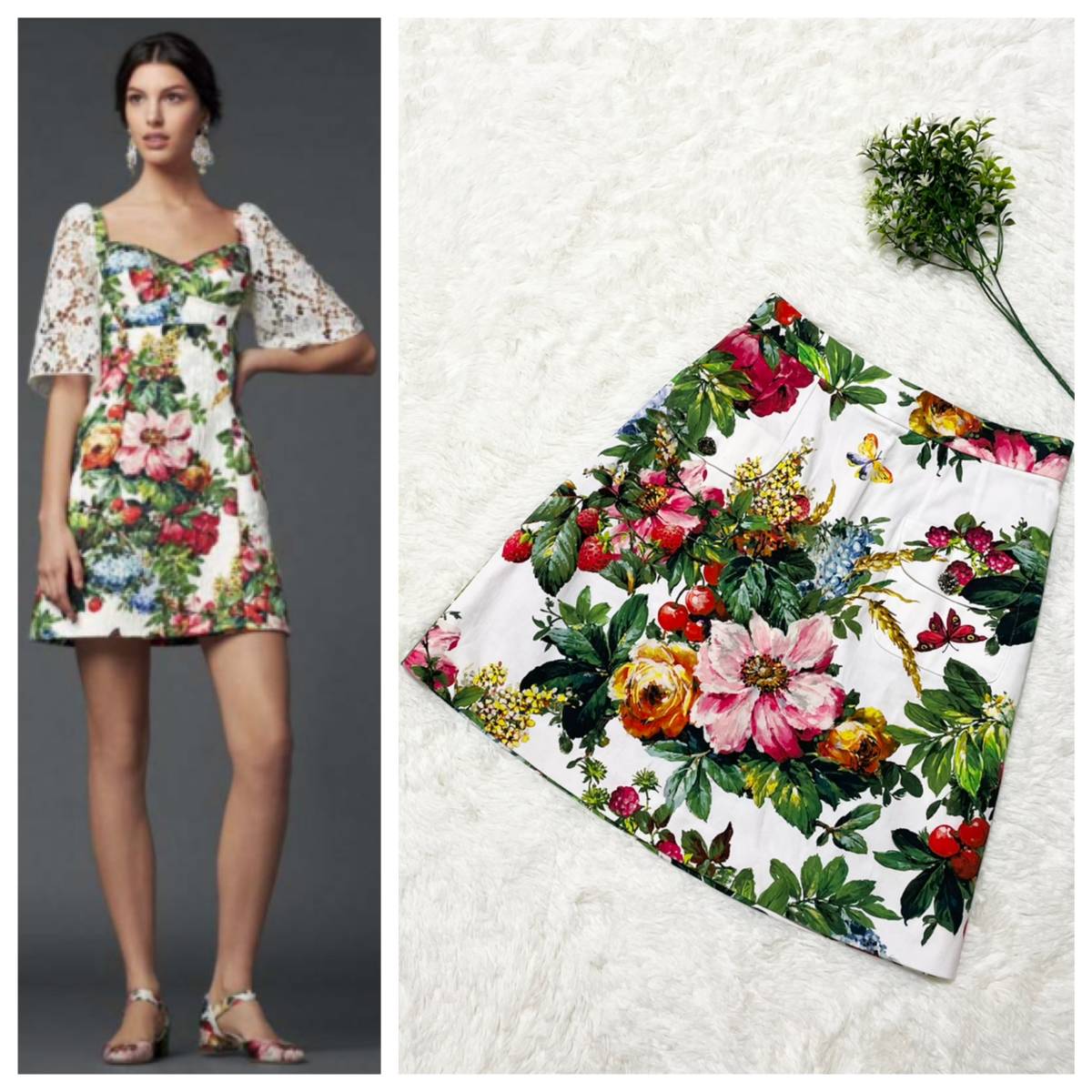 > 本物 ドルチェ&ガッバーナ 装飾ボタン付 花柄 フラワー フローラルデザイン スカート 38 ドルガバ DOLCE&GABBANA レターパック可