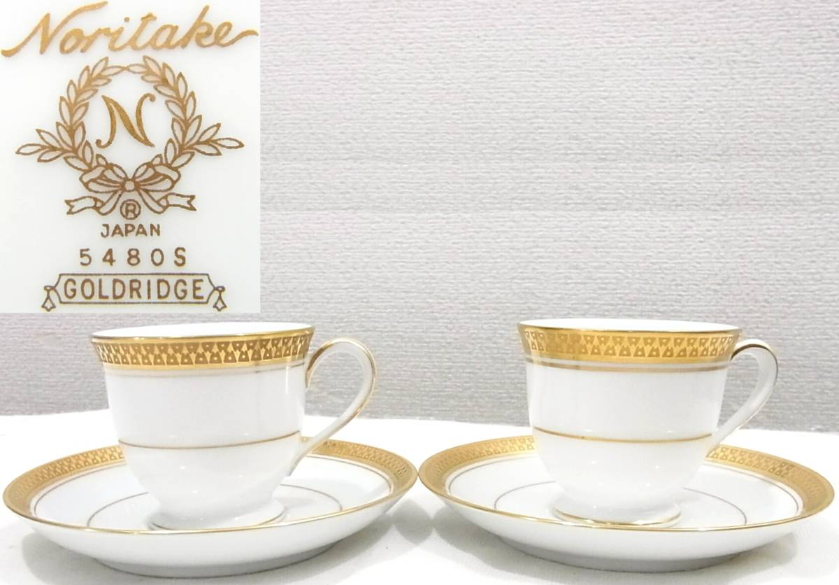 - 即決は送料無料 新品同様品(展示品)ノリタケ デミカップ&ソーサー2客セット91392C/5480Sホワイト白ゴールドリッジ金彩Noritakeデミタス