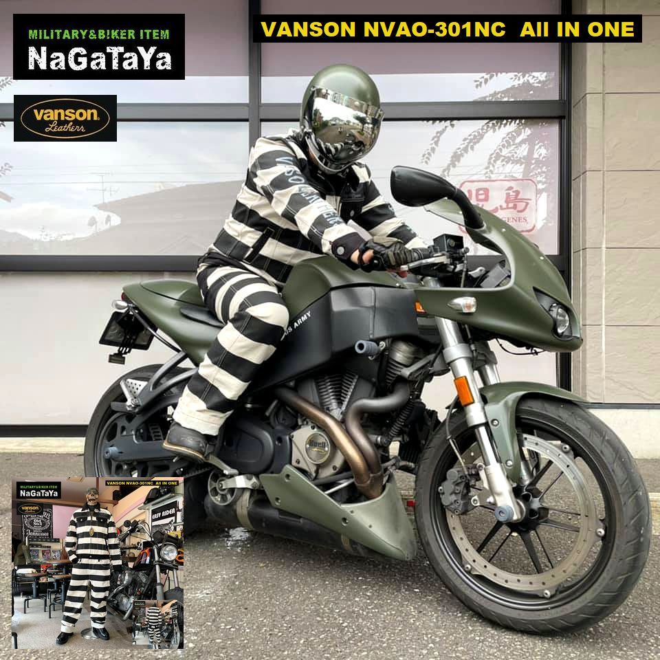 > VANSON バンソン NVAO-301NC オールインワン フライング ロゴ刺繍 つなぎ カバーオール ボーダ 囚人柄 XXLサイズ 大きいサイズ