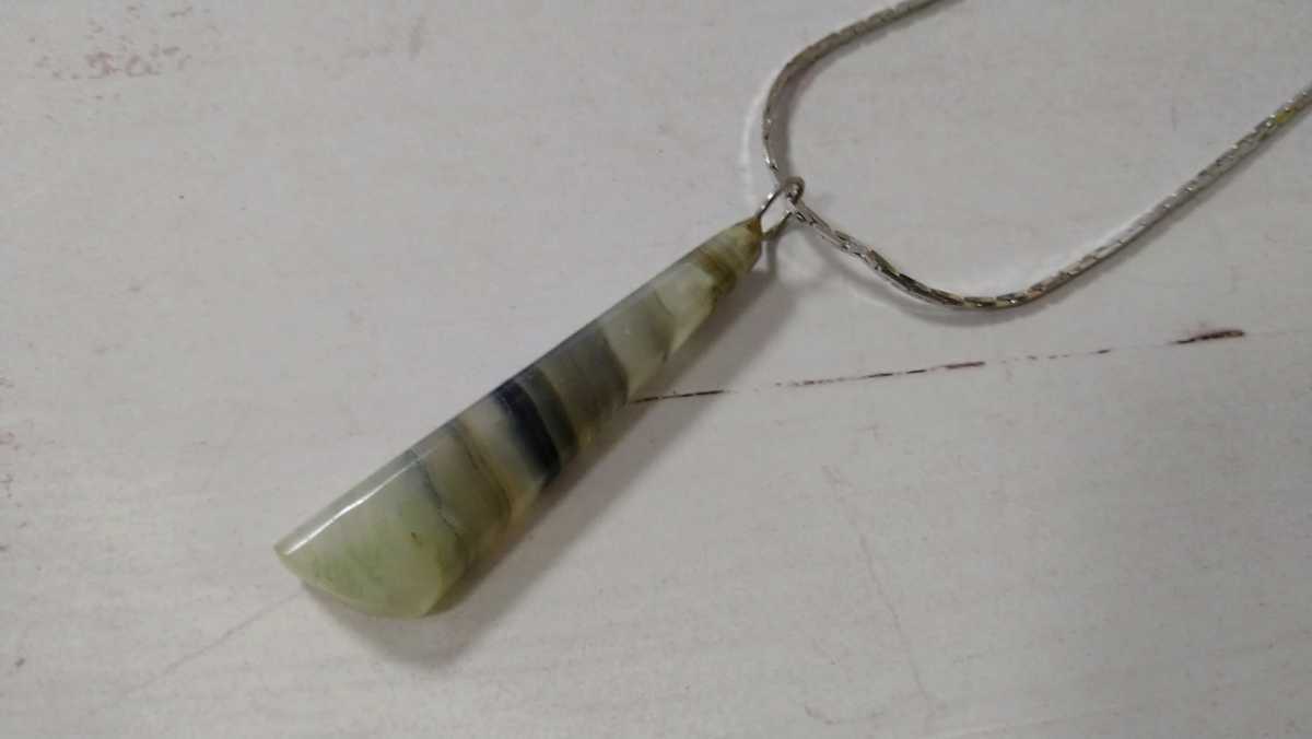 - □模様入り緑系ストーンビジュー・シルバーカラーチェーンネックレス□