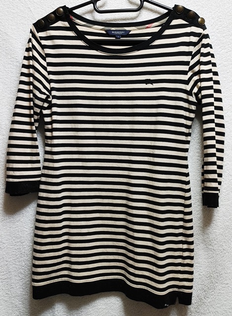 - Sサイズ位 BURBERRY LONDON バーバリー 七分袖 カットソー 肩ボタン ボーダー 黒×ベージュ サイズ1