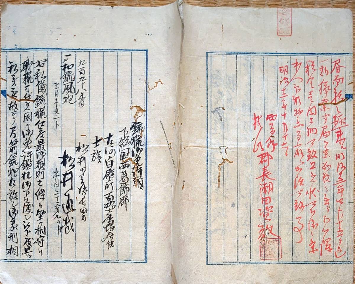 - f21090320〇猟銃免許願 和銃風砲 下総郡西葛飾郡白壁町 郡長赤字裁可書類 明治12年〇和本古書古文書