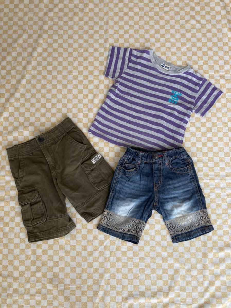 - 09-G144★送料無料!KP&GAP他♪ボーダーTシャツ&ハーフパンツ2本セット・110・パープル×グレー・カーキ・デニム・ニットプランナー