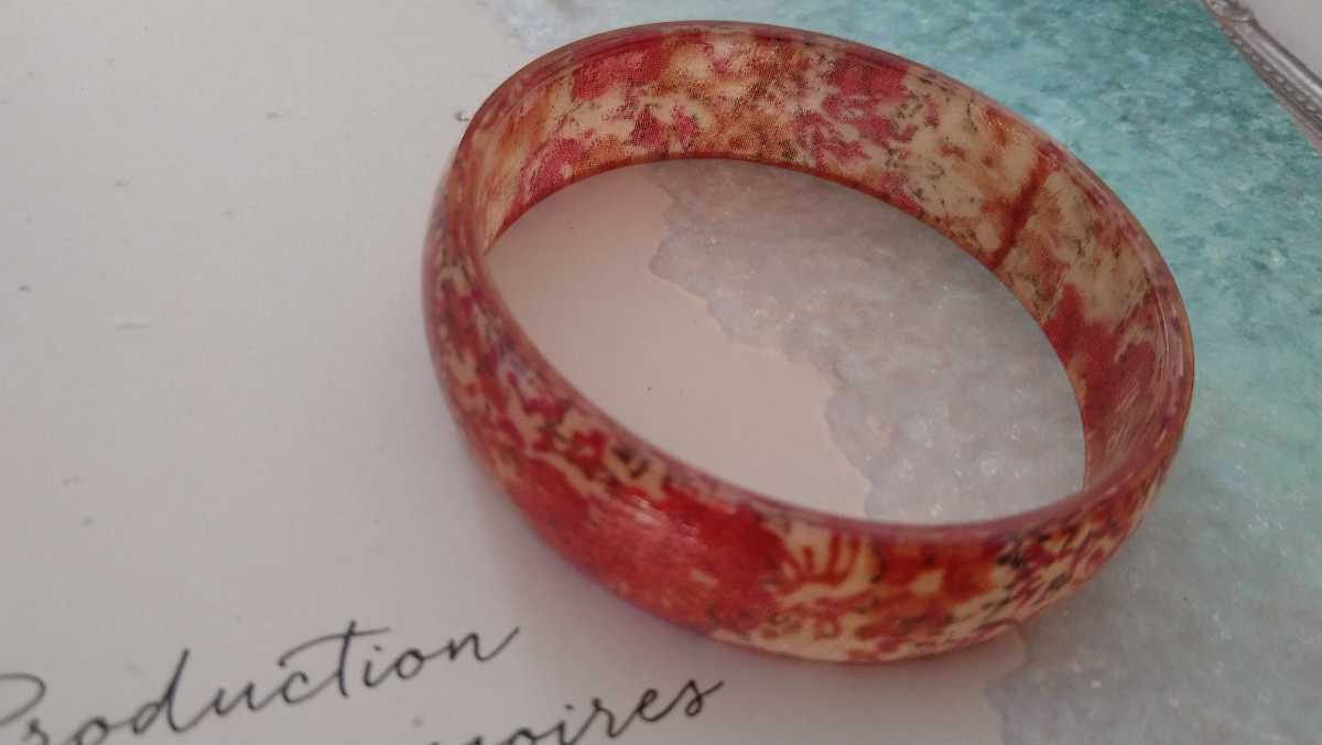- □赤×ベージュ系・花柄調 太ブレスレット□