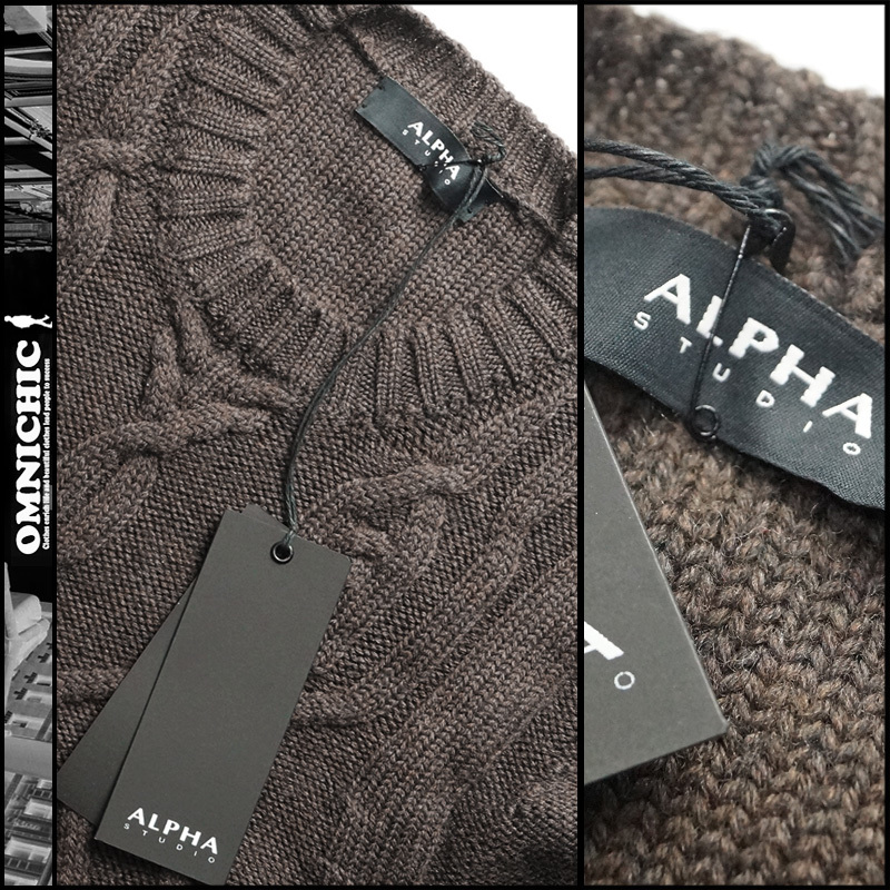 - ■新品3.9万【ALPHA STUDIO】アルファスタジオ程よいボリュームと高級感の美しいケーブル編が目を引くクルーネックローゲージニット46