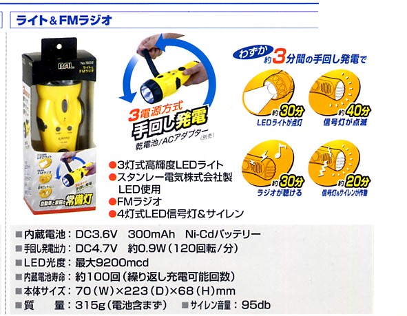 > 暴風雪や豪雨に備えよ!ついでに台風や土砂崩落や洪水などの激甚災害対策は完璧?いざとなっても手動発電でライトラジオ警報信号灯が動く!