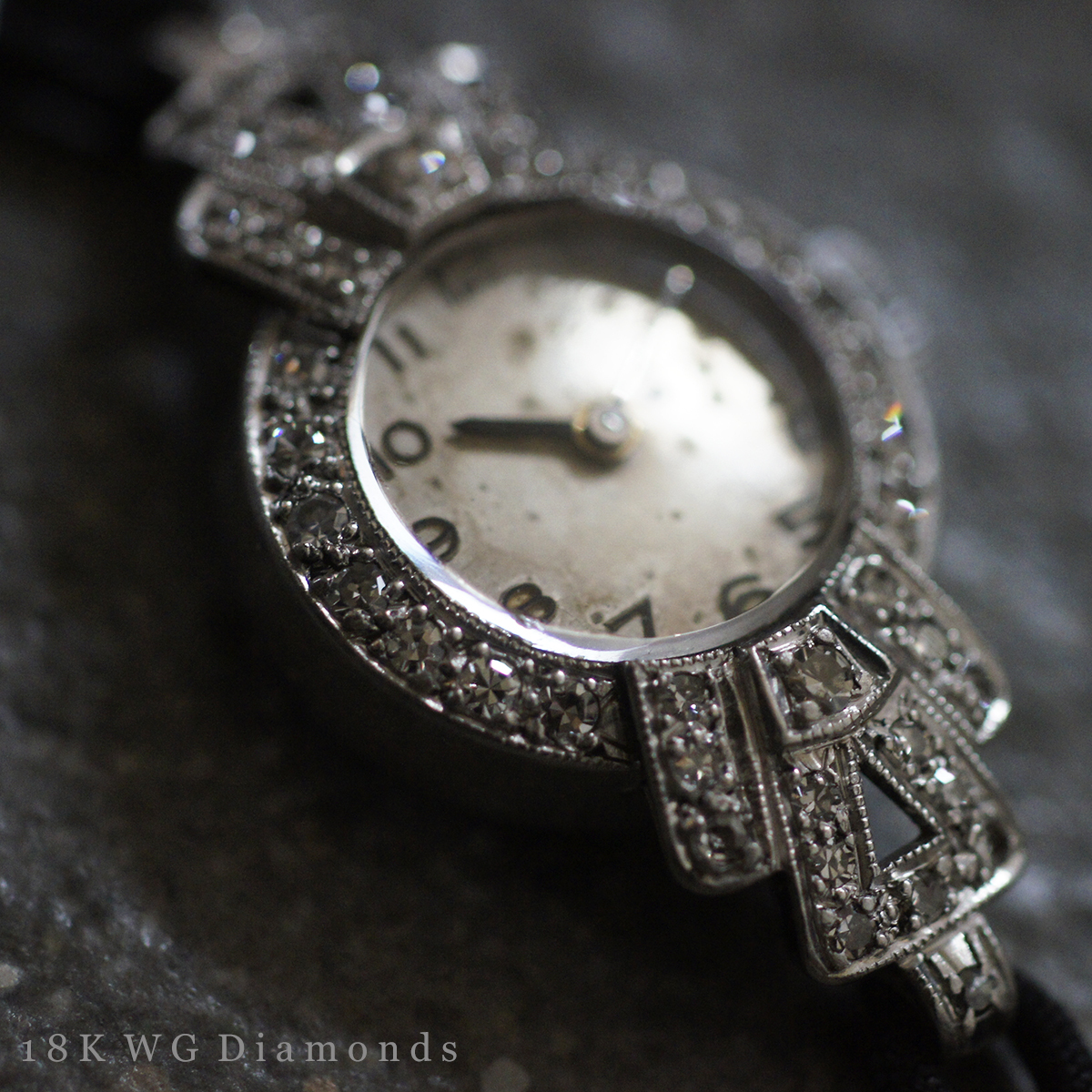 > 稼働品 18K WG 金無垢 天然 ダイヤモンド アンティーク ウォッチ 14.9g エレクション Election レディース 腕時計 ホワイト ゴールド K18