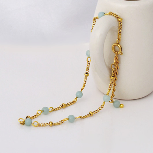- 天然石 アマゾナイト 天河石 ビーズ サージカルステンレス ブレスレット