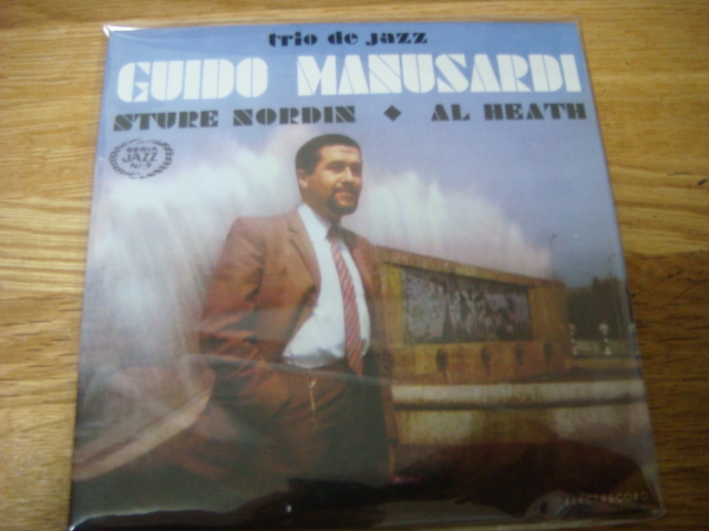 ギド マヌサルディのピアノトリオアルバムを収録したLPを紙ジャケでJAZZHUSレーベルが発売したものです。人気盤の「BLUE TRAIN」のディフジャケ仕様ですね。詳細な英文ライナーもついてます