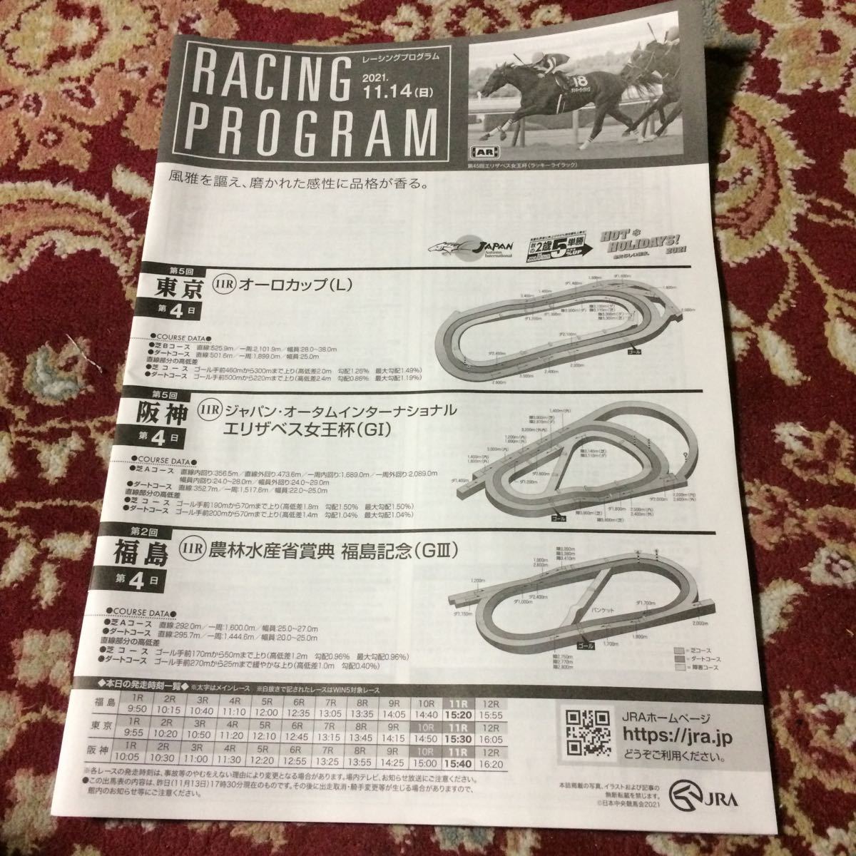 - JRAレーシングプログラム2021.11.14(日)エリザベス女王杯(GⅠ)、福島記念(GⅢ)、オーロカップ(L)