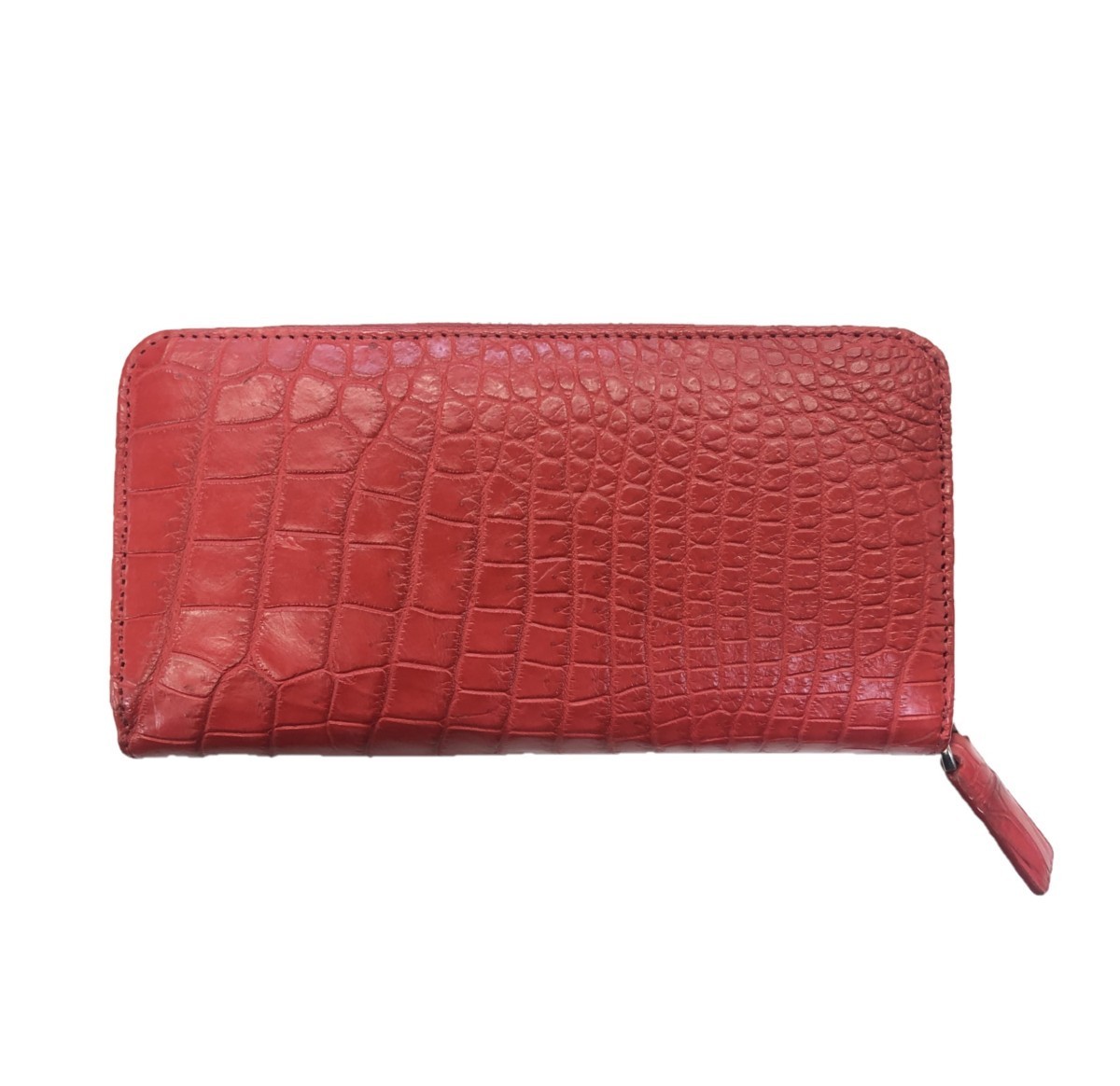 - JK クロコダイル クロコ 本革 本皮 ワニ革 新品・未使用 財布 ラウンドファスナー 大容量財布 レザー 良品質 プレミアム品質 レッド 赤