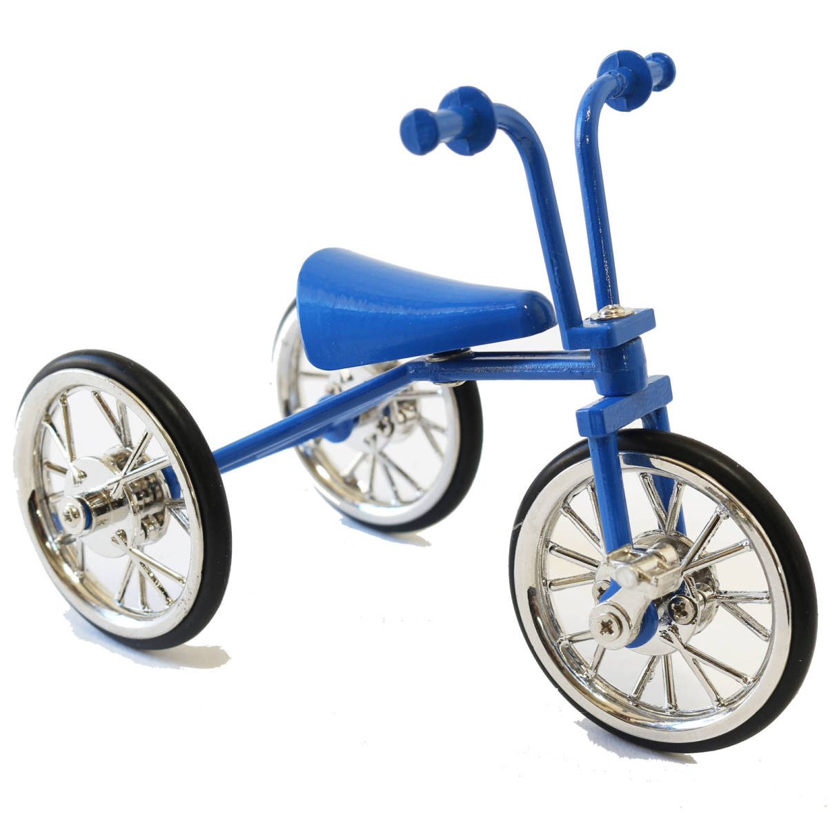 - 三輪車 三輪車ミニチュア 自転車置物 インテリア 可動式 昔ながらの三輪車模型 ドールハウス ミニチュア 1/10 車輪が動く 青色