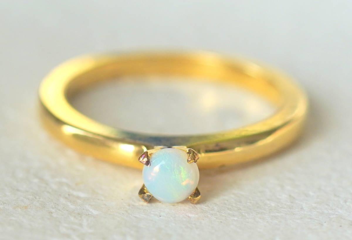 - シルバー925製 一粒オパール付きリング サイズ約11号 ゴールドカラー