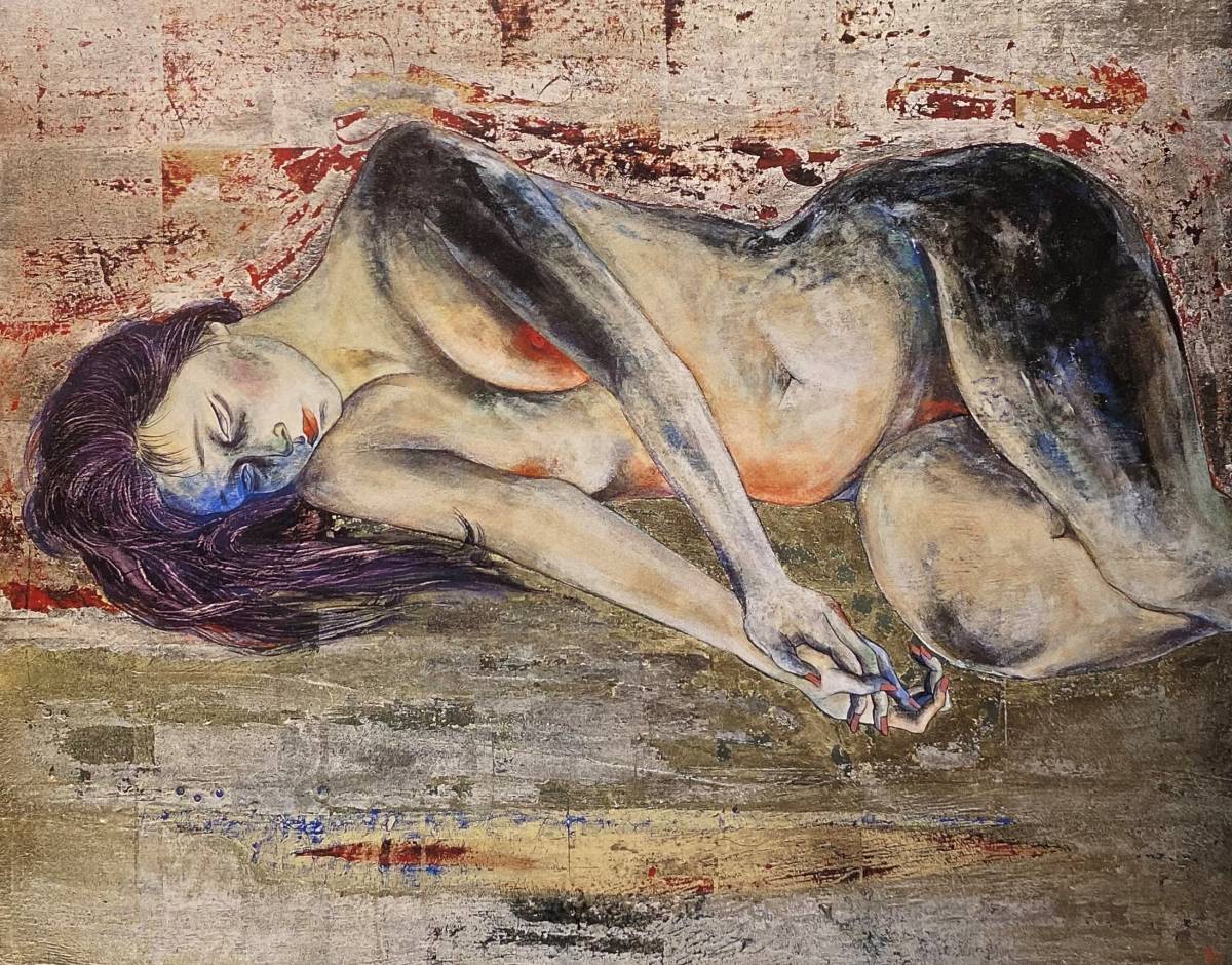 - 内山あぐり、〈赤と青の娼婦〉、希少画集画、高級新品額・額装付、状態良好、送料無料