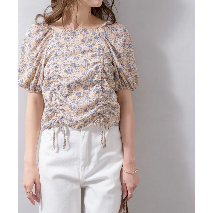 - SpRay 花柄シャーリングオフショルブラウス ブルー