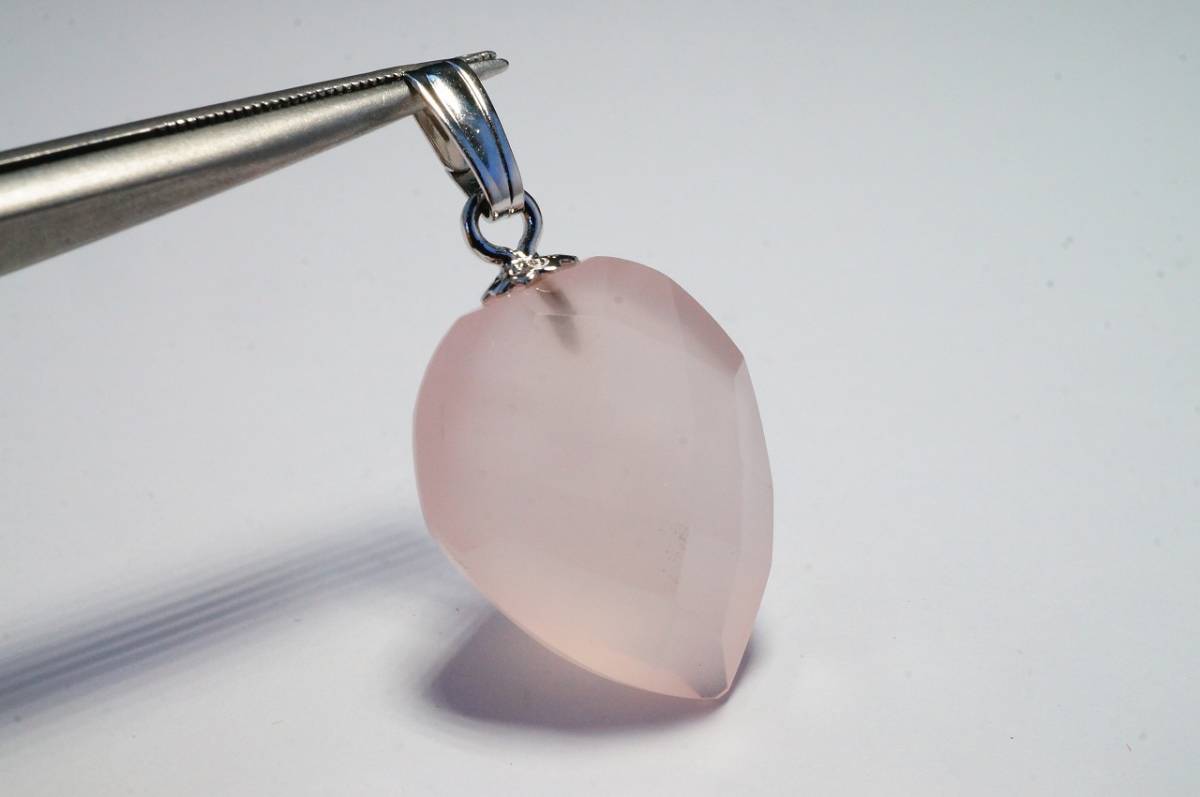- 希少!【高級宝飾品用ルース】天然ローズクォーツ(紅水晶)【立体カットルース】彫刻研磨高透明度石使用17.3ct