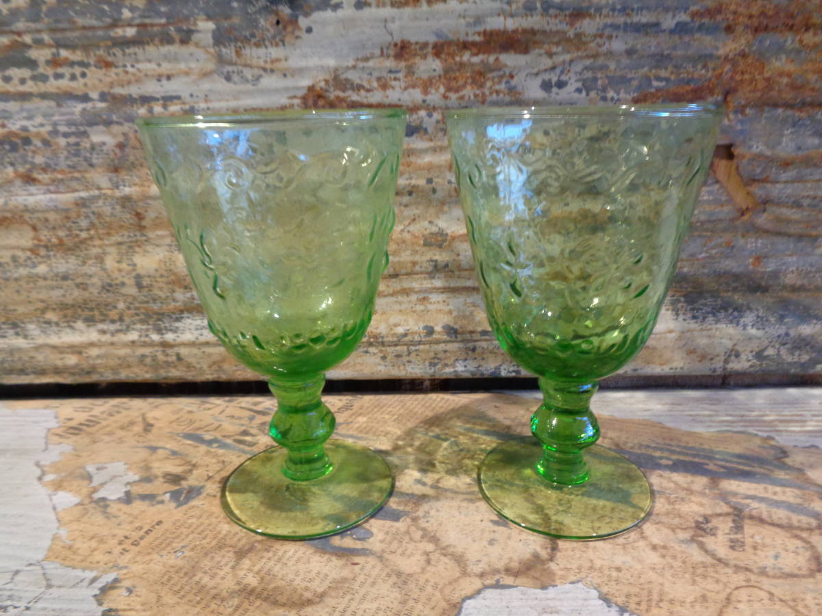- 【フランス蚤の市ペアグラス2客】ワインブランデーガラス古道具アンティークインテリア骨董アイスクリームキッチンカフェバーテーブル