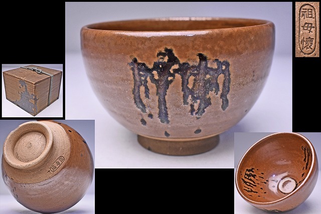 - 祖母懐 在印 ★ 古瀬戸釉 茶碗 ★ 木箱 ★ 祖母懐茶碗 姥懐 ★ 柿釉の様な釉景に柳の様な鉄絵の流れが味わいのある逸品 ★ 茶道具 ★