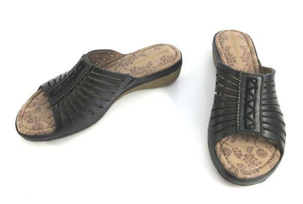 - ハッシュパピー レディース 新品 訳☆本革 ウェッジサンダル つっかけ オープントゥサボサンダル ローヒール 黒 22.5cm A1262☆HushPuppies