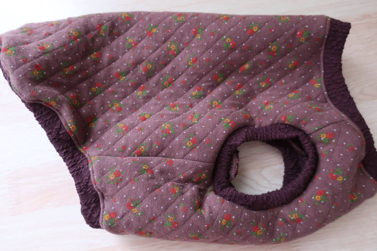 - 【M】秋冬キルトニット 小花 渋ワイン 渋パープル 中型犬犬服ドッグウエアハンドメイド