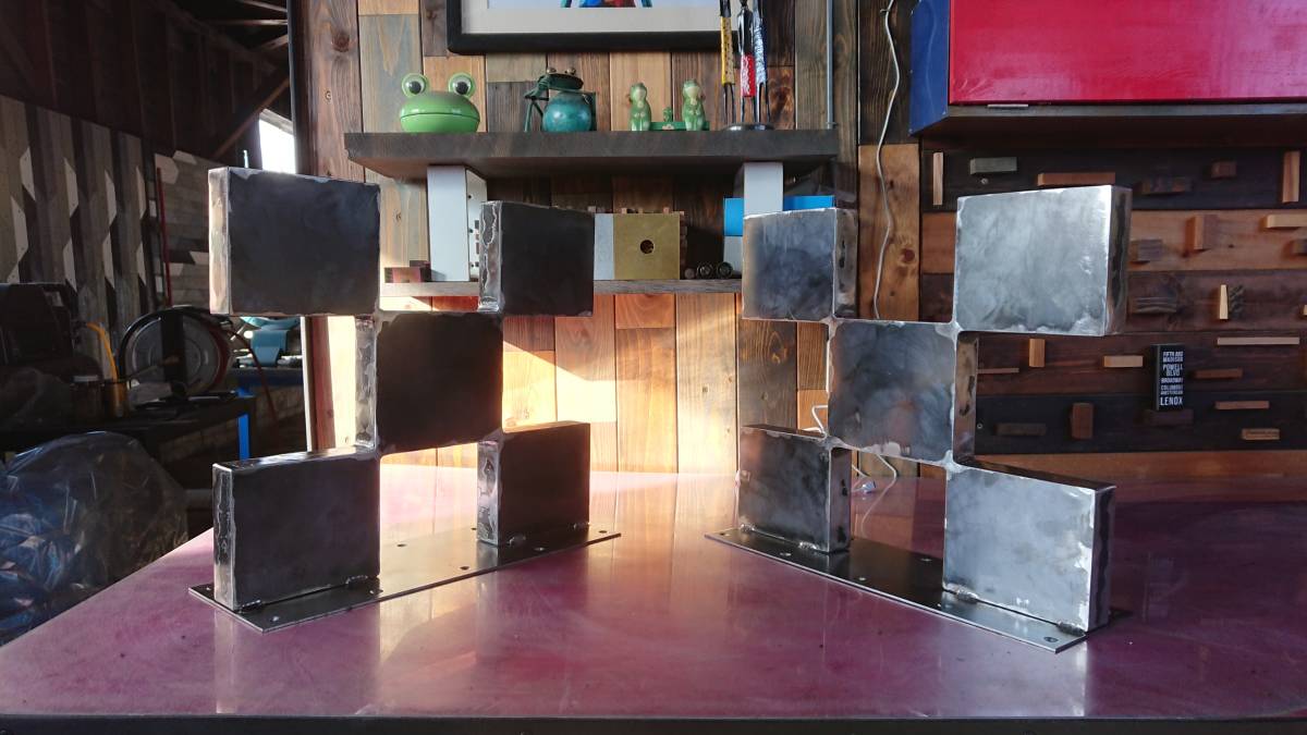- 無塗装でアイアンなBOX鉄脚♪ 35×400×350mm 市松型 2脚ver. リビング・ローテーブル