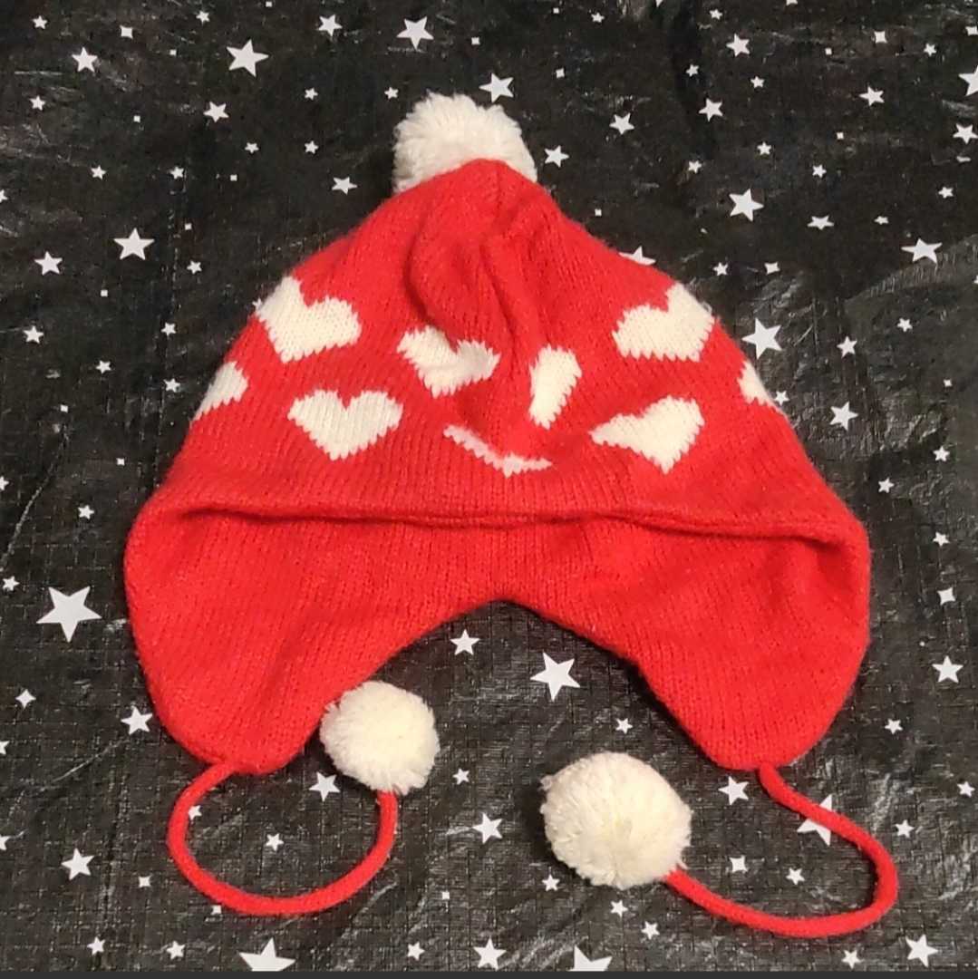 - ハート ボンボン ニット帽 ニットキャップ ニット帽子