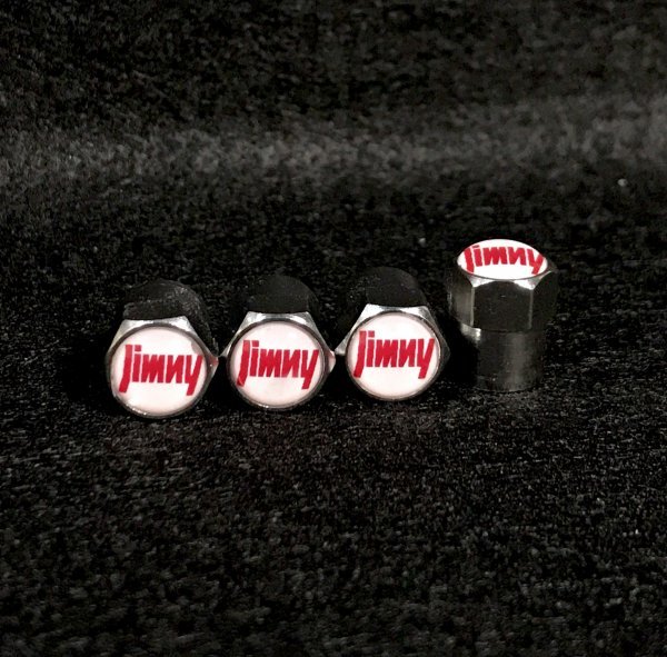 - 送料無料 ジムニー ロゴ 白×赤 エアーバルブキャップ( 現行 新型 ジムニー シエラ JB64 JB74 JB23 JB33 JB31 JB43 SJ20 SJ30 に適合)