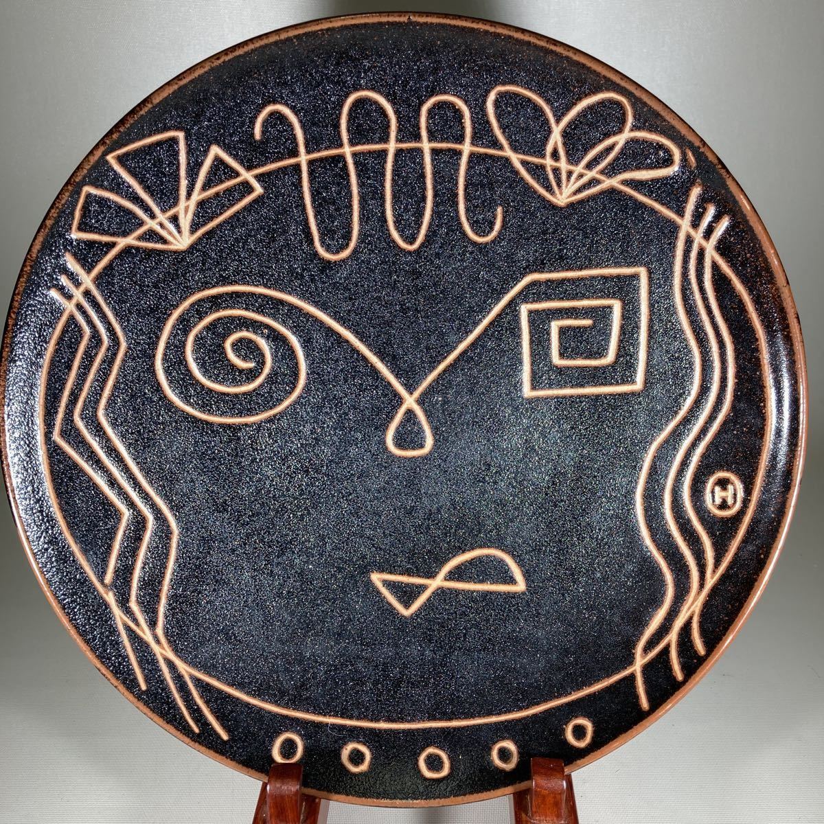 - haruo okamoto造「顔」現代アート 飾り皿 888