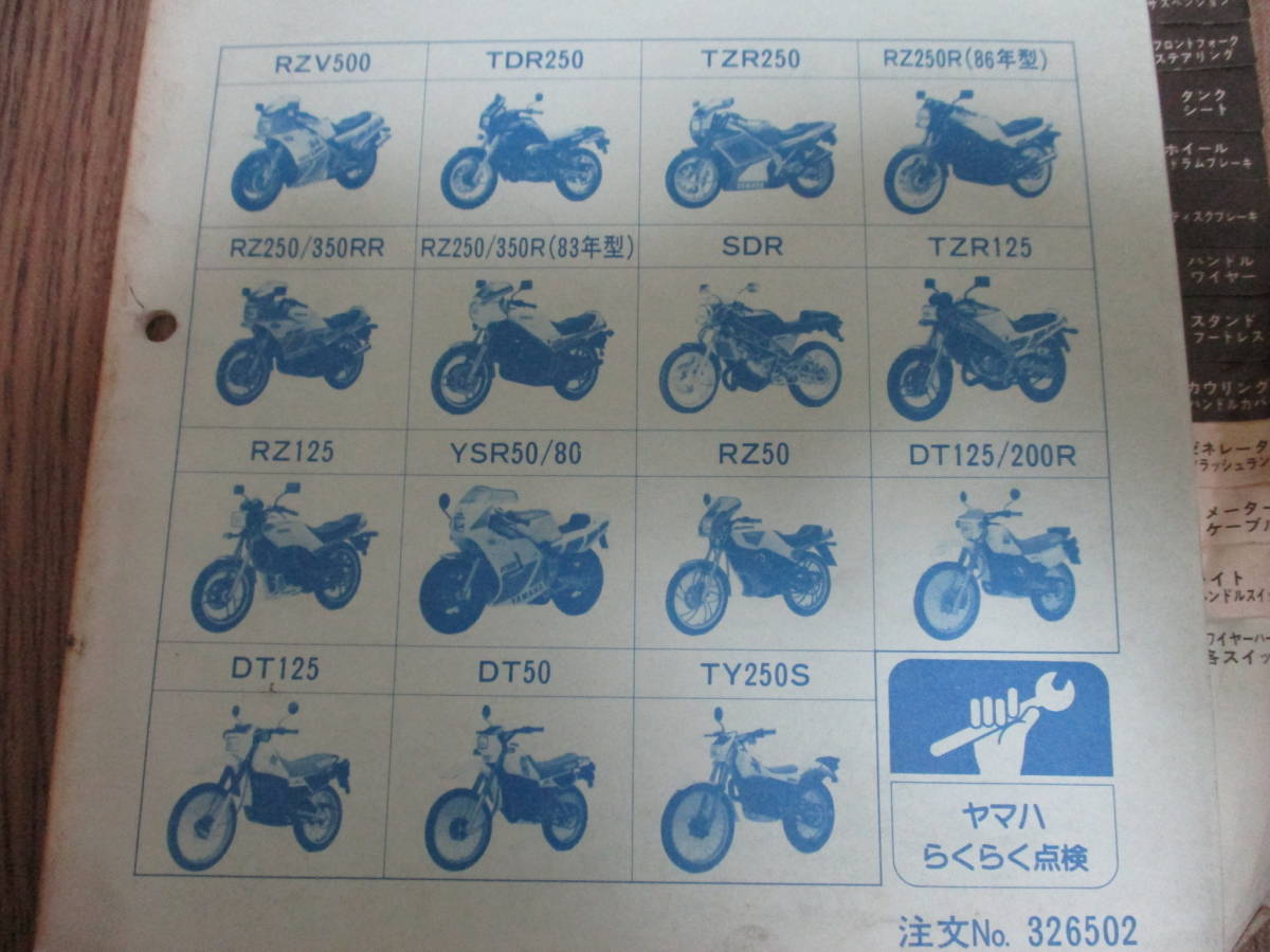 > 11] ヤマハ 昭和63年 標準整備工数表 RZV500/TDR/RZ250/R/350/RR/SDR/TZR/YSR/RZ/DT/TY250S