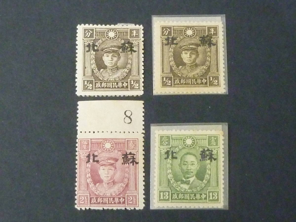 - 22 S №49 中国占領地切手 1941年~ 蘇北 小字加刷 北京版烈士像 1/2c~13c 計4種 未使用OH主体