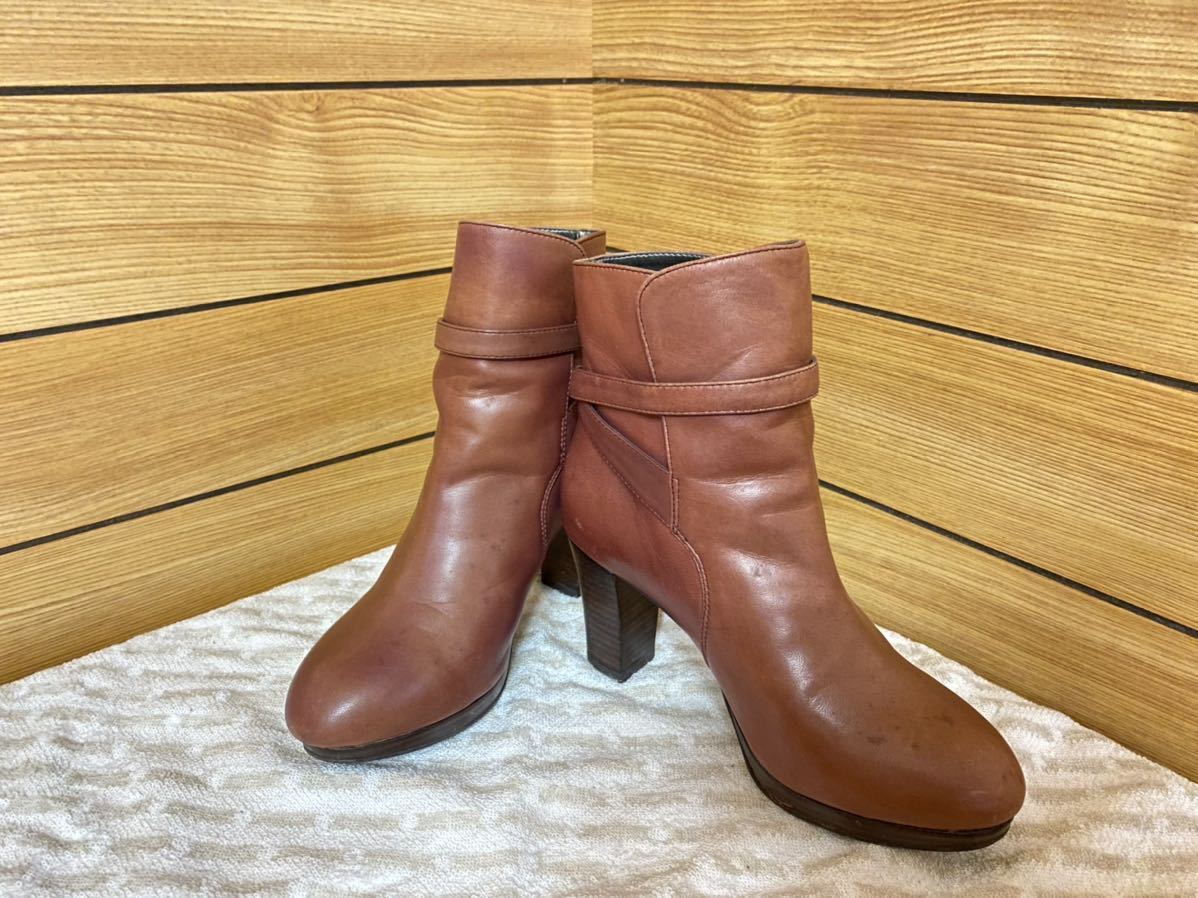 > ショートブーツ ブーティ ヒール7cm 23.5cm キャメル