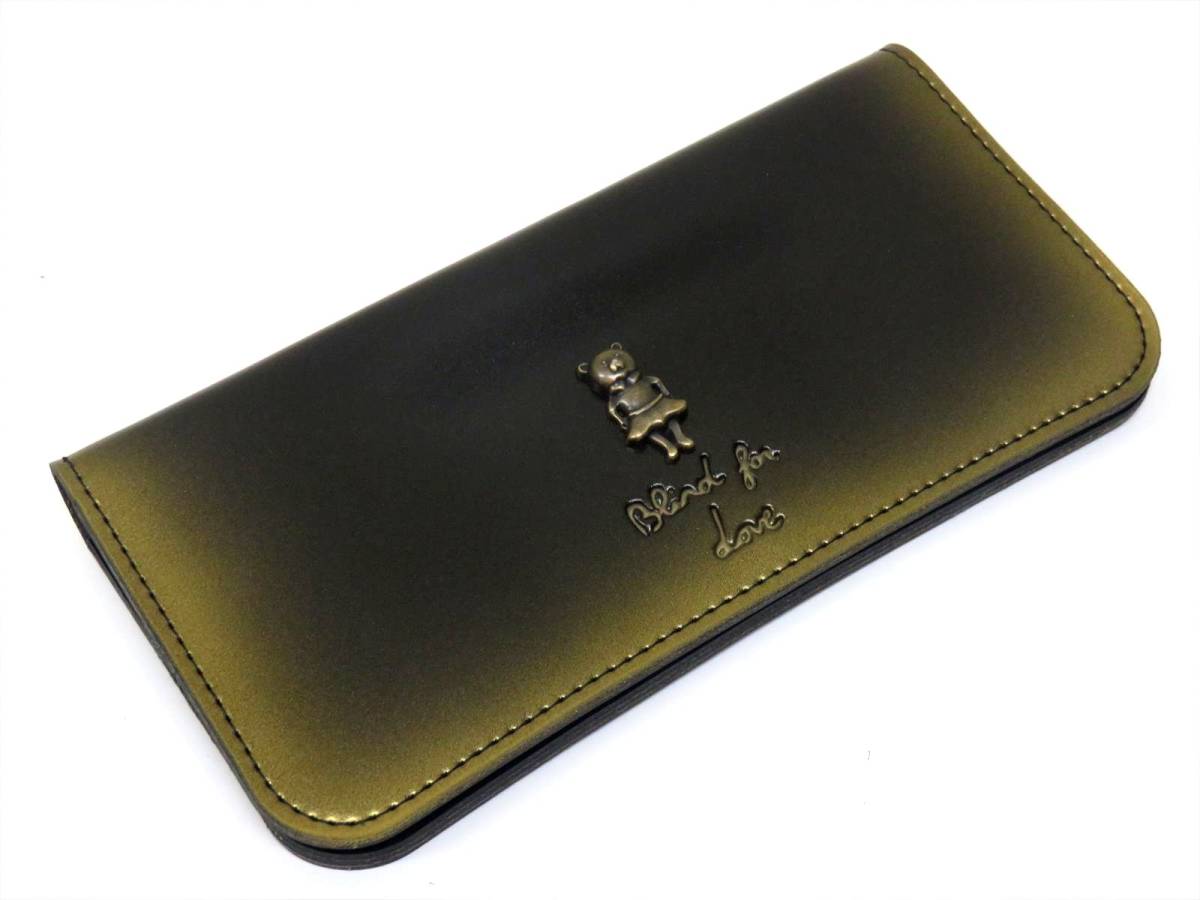 - 長財布 ブラック レディース くまモチーフ フラップ 札 小銭入れ カードポケット付 PUレザー ウォレット 黒 グラデーション 新品 送料無料