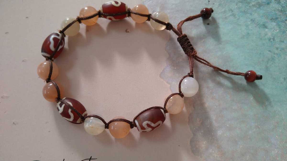 - □茶×薄ピンク×乳白色ストーン・ブレスレット□