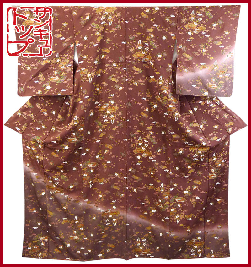 - 【店頭価格15000円の品 在庫処分 大幅値下げ】☆質:39トップ 着物館 650 正絹 小紋 吉祥華扇面文様 中古 趣味の場などに