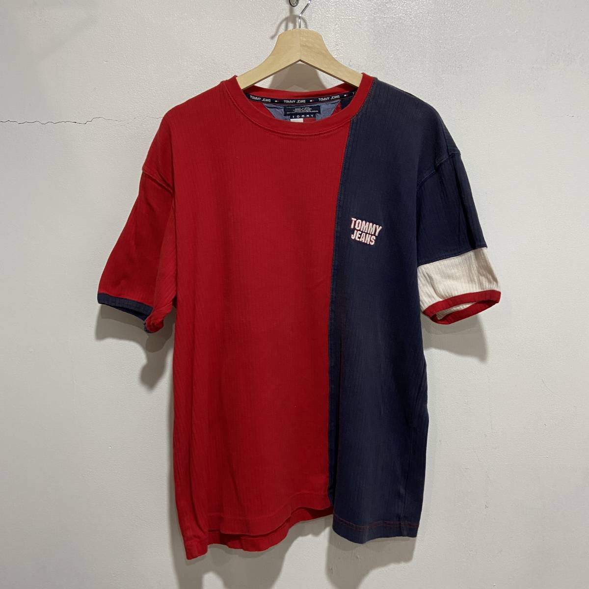 > ☆送料無料☆Tommy HILFIGER☆トミーヒルフィガー☆リブTシャツ☆メンズL☆赤ネイビー☆B22