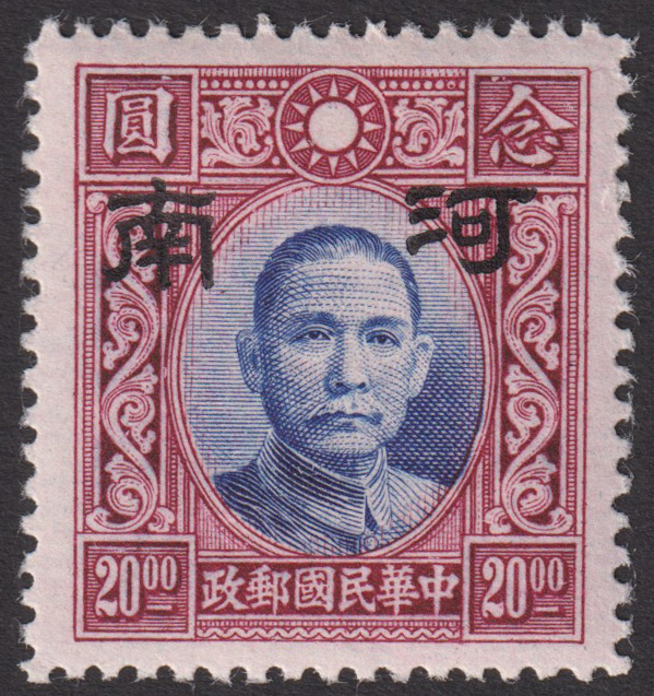 - 中国占領地切手 河南 省名加刷 大字 大東版孫文票 すかしなし 20円 未使用 OH JPS:2C65 0565