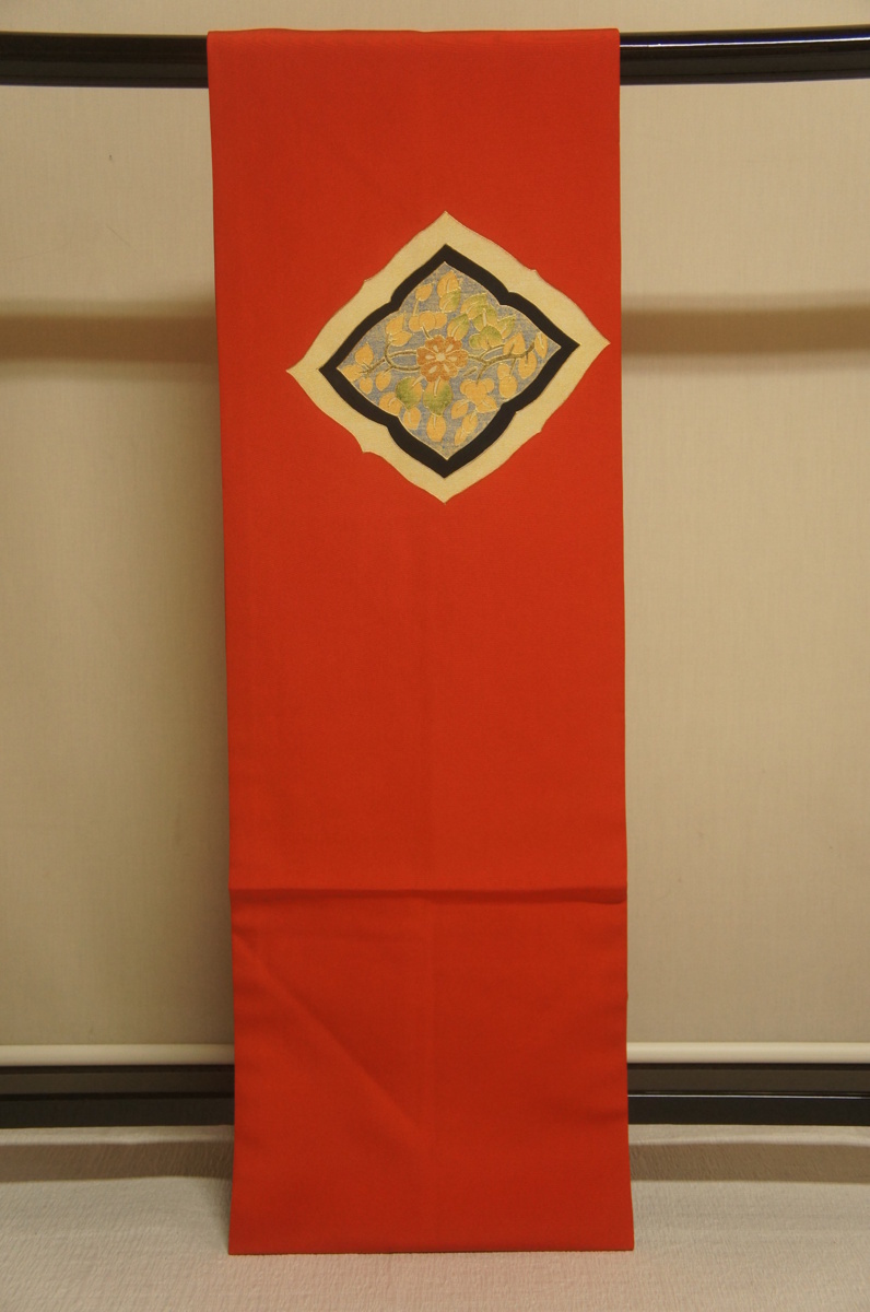 - 正絹塩瀬柘榴色菱取金砂子花枝模様名古屋帯[N13403]