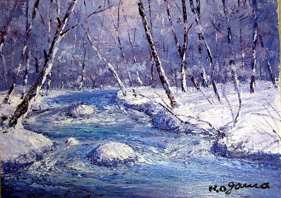 - 油彩画 洋画 (油絵額縁付きで納品対応可) P20号 「冬の奥入瀬1」 小川 久雄