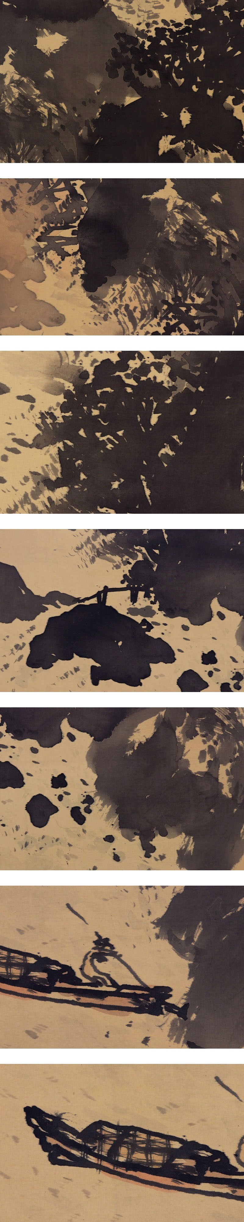 - 【真作】富田渓仙【水墨山水】◆絹本◆合箱◆掛軸 v12129