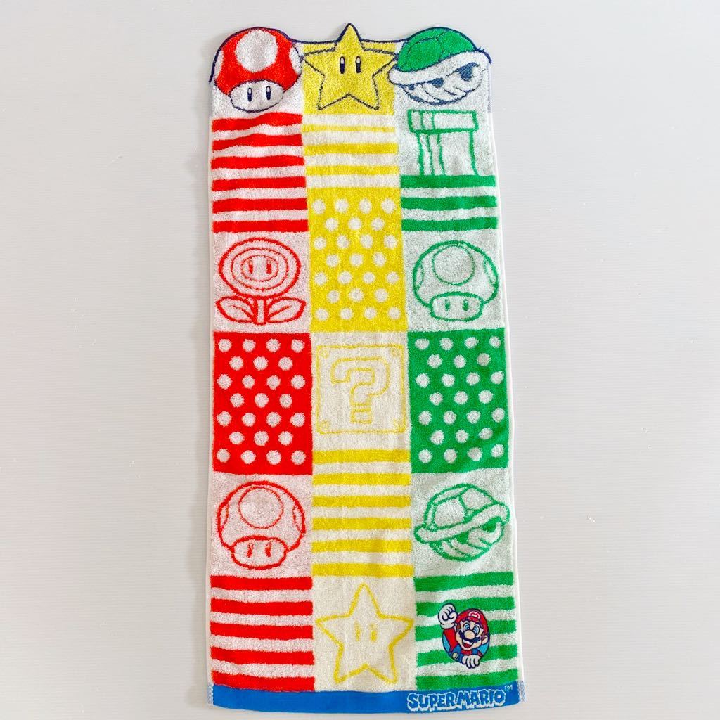 > スーパーマリオ SUPER MARIO フェイスタオル 未使用 約80×34 ダッシュキノコ マリオ スーパースター ノコノコ KoopaTroopa Super Mushroom