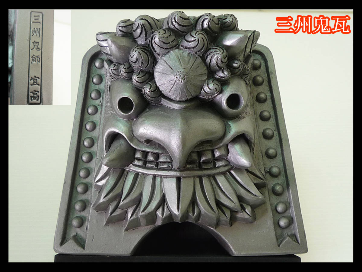 - 三州鬼瓦 鴉天狗鬼瓦 吽 加藤宜高 作 伝統的工芸品 いぶし銀 鬼瓦 置物 厄除け お守り 記念品 還暦 古希 傘寿 和風 伝統的工芸品 お買得②
